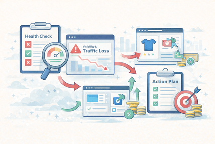 Hesap sağlığı, görünürlük ve trafik kayıplarını analiz ederek; ürün listeleme hatalarını, fiyat/kampanya eksiklerini tespit ediyor ve yatırım öncelikli bir aksiyon planı sunuyoruz.